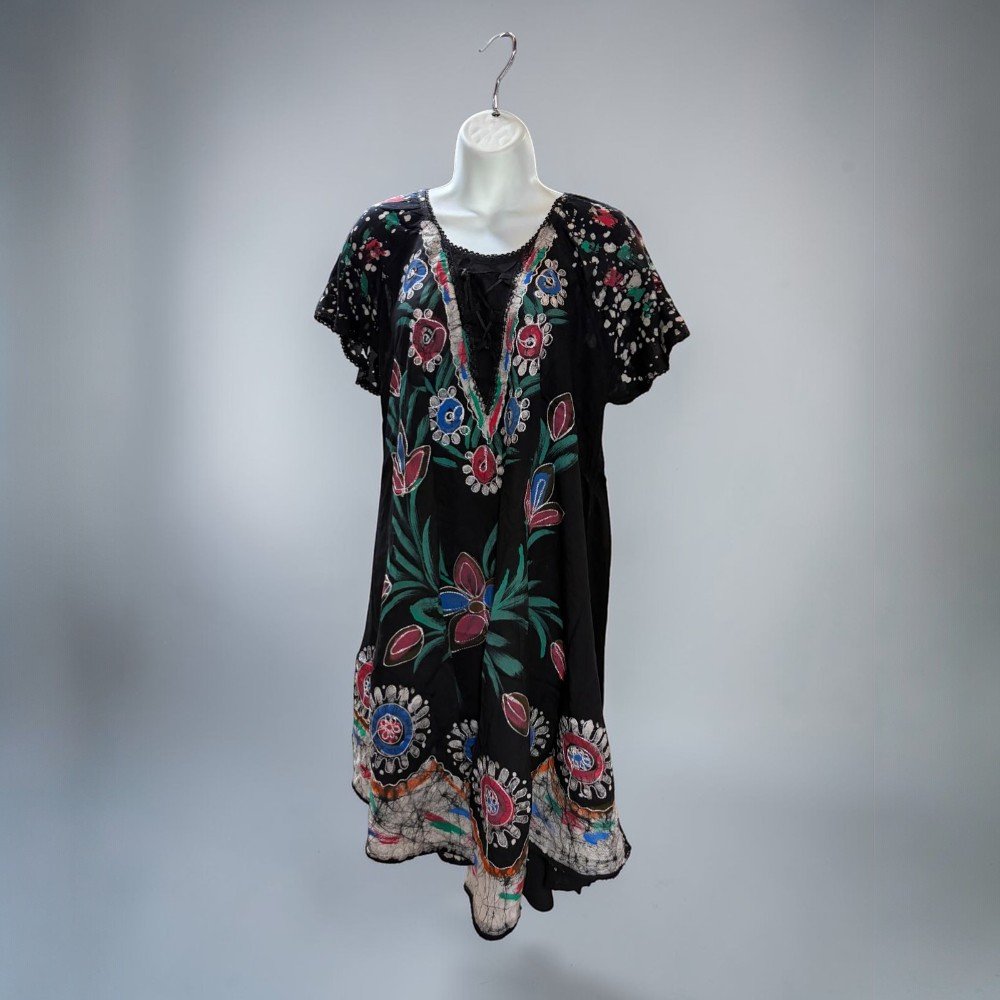 Boho Batik Floral Tunic Dress – Loose Summer Dress Women – Embroidered Bohemian Dress