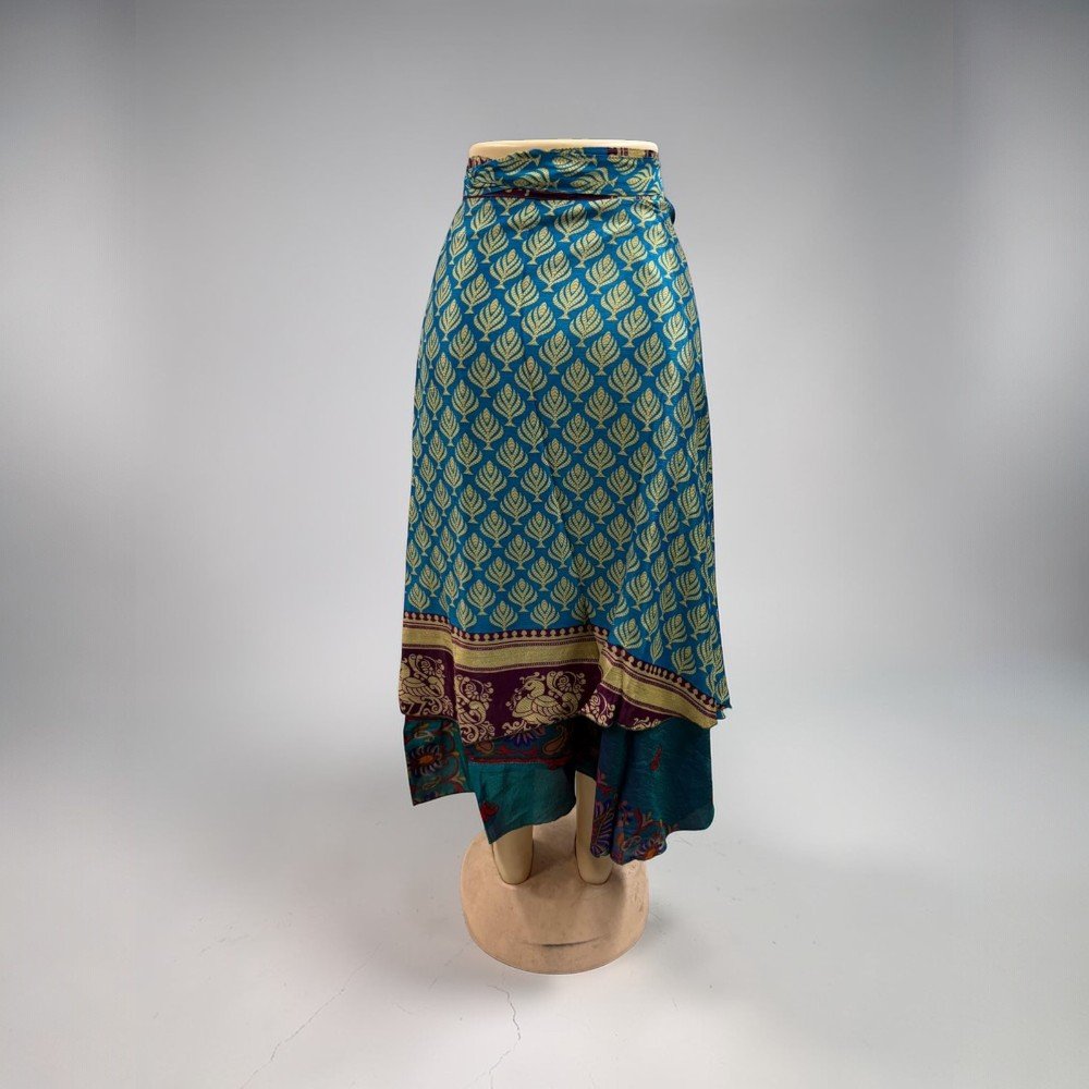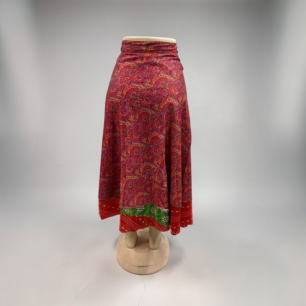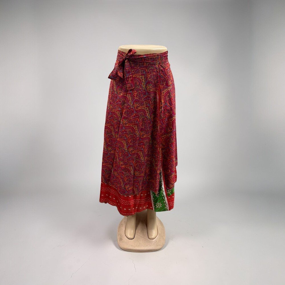 Silk Sari Wrap Long Skirt Bohemian Flamenco Gypsy Skirts Hippie Skirt Vintage Handmade Skirt These beautiful vintage wrap skirts are made form 2 layered art silk sari & are prefect Beach You can wear it as Skirt or halter dress. Your choice Wraps around waist or cress cross at neck. This classy Rajasthani long wraparound skirt is designed to represent Rajasthani culture. It has a belt for convenient fitting on the waist. This stylish and tradition…