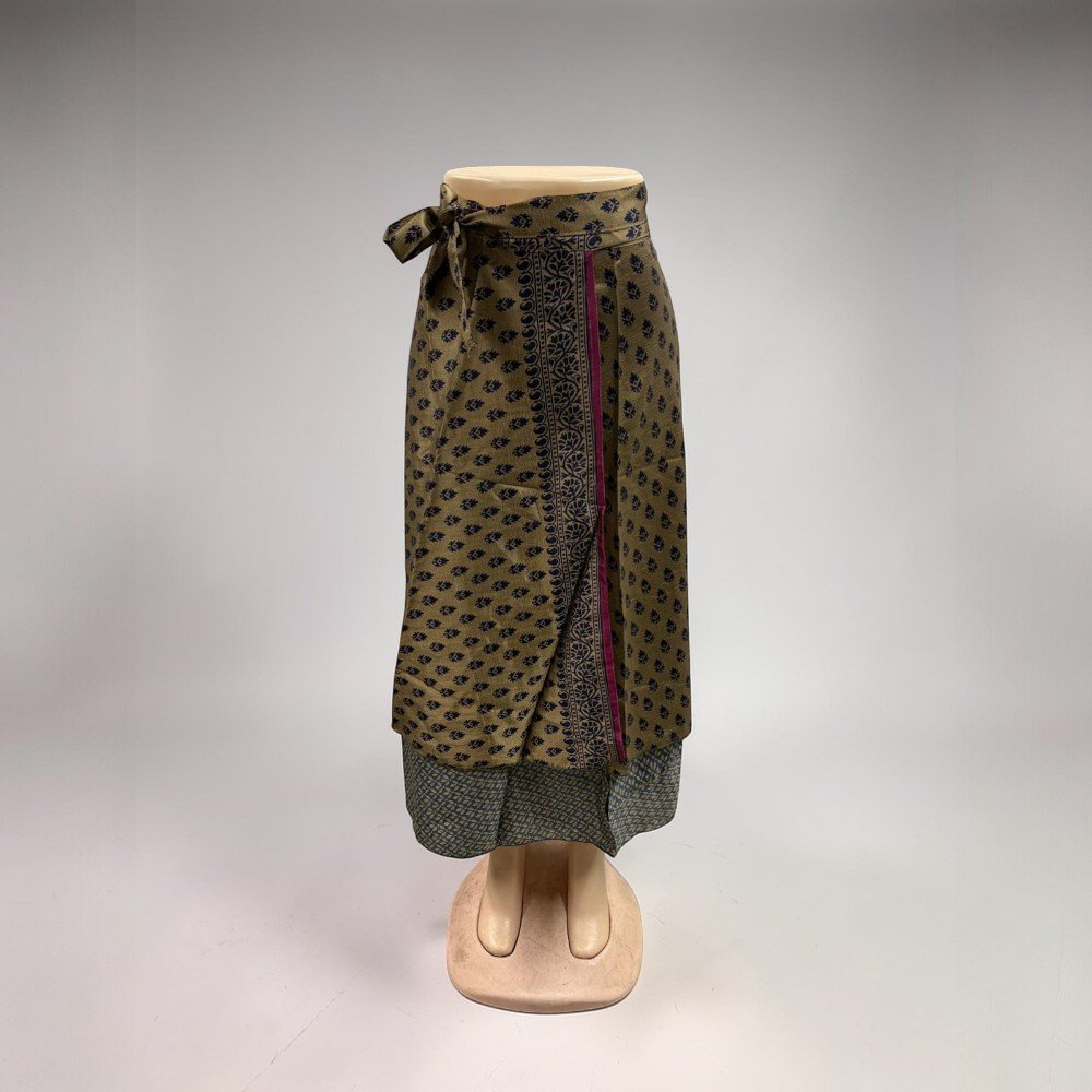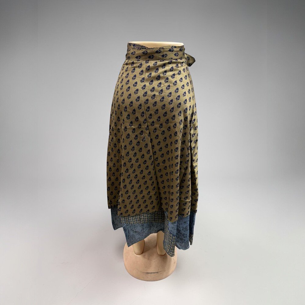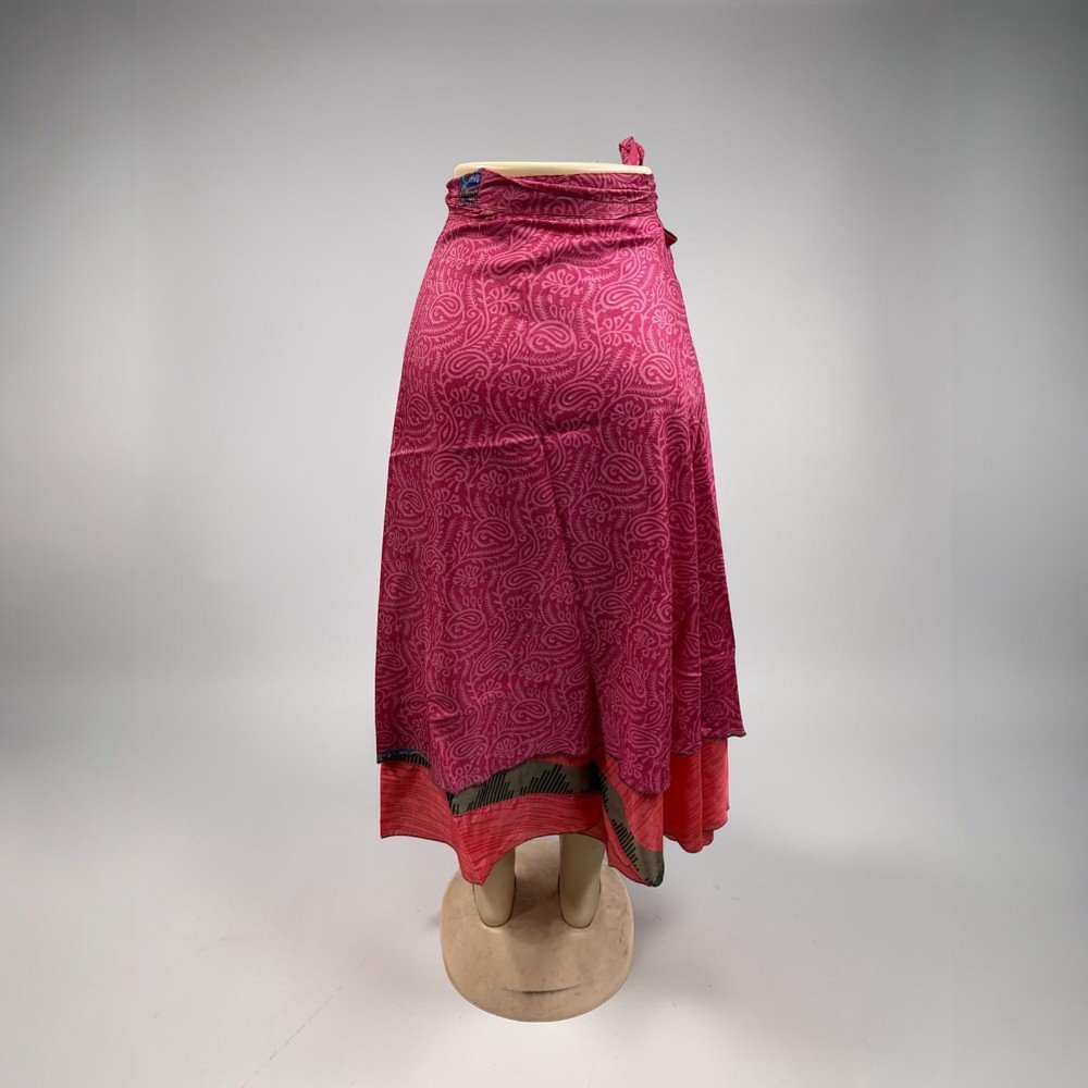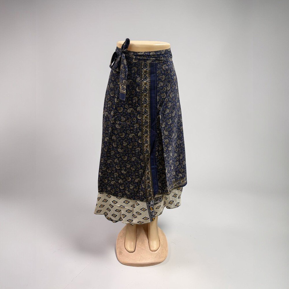 Silk Sari Wrap Long Skirt Bohemian Flamenco Gypsy Skirts Hippie Skirt Vintage Handmade Skirt These beautiful vintage wrap skirts are made form 2 layered art silk sari & are prefect Beach You can wear it as Skirt or halter dress. Your choice Wraps around waist or cress cross at neck. This classy Rajasthani long wraparound skirt is designed to represent Rajasthani culture. It has a belt for convenient fitting on the waist. This stylish and tradition…