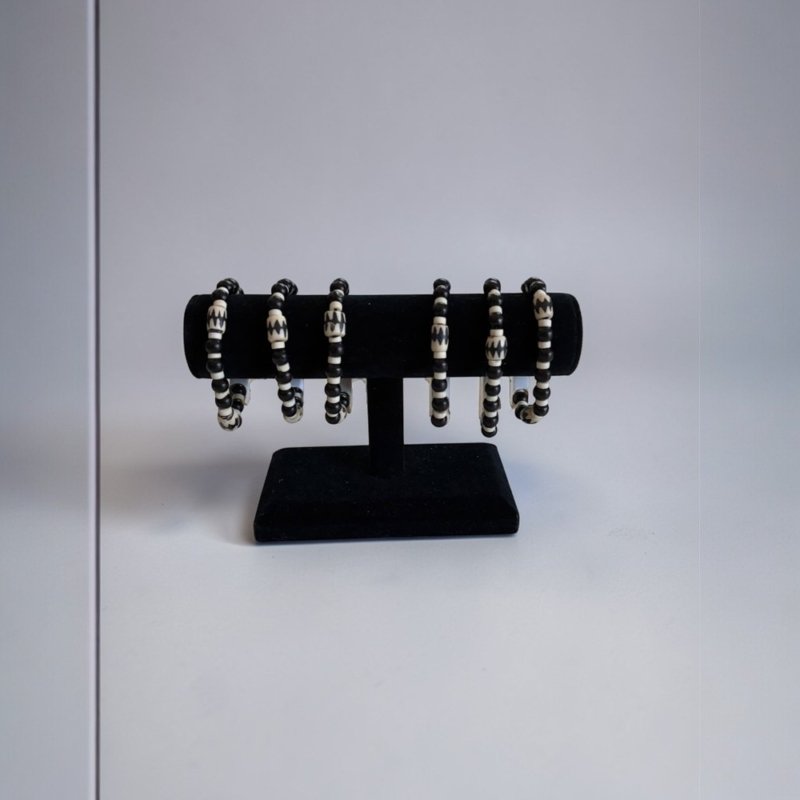 Black & Ivory Beaded Bracelet | Tribal Inspired Stretch Bracelet | Minimalist Neutral Jewelry | Stackable Boho Bracelet | Everyday Wrist Accessory