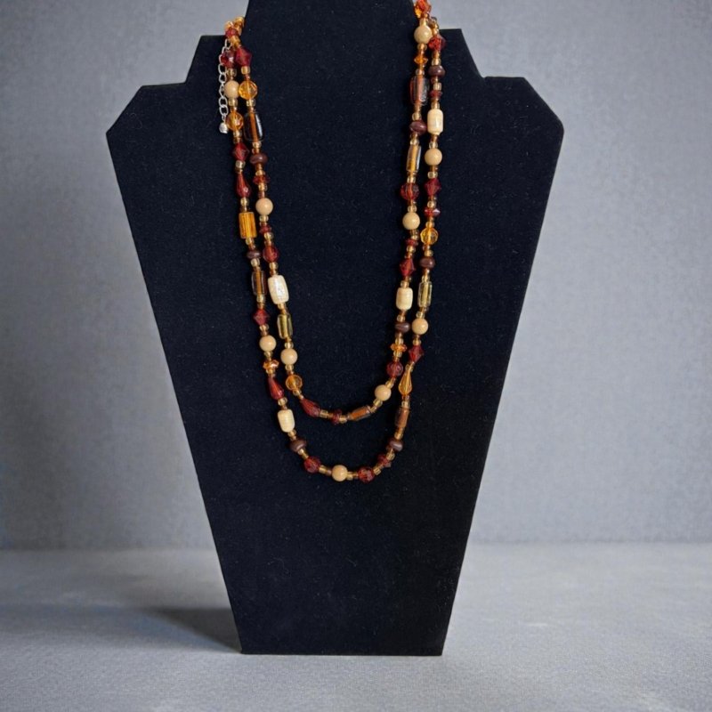 Layered Beaded Necklace | Warm Earth Tone Jewelry | Multi Strand Boho Necklace | Rustic Amber Brown Statement Piece | Fall Inspired Jewelry