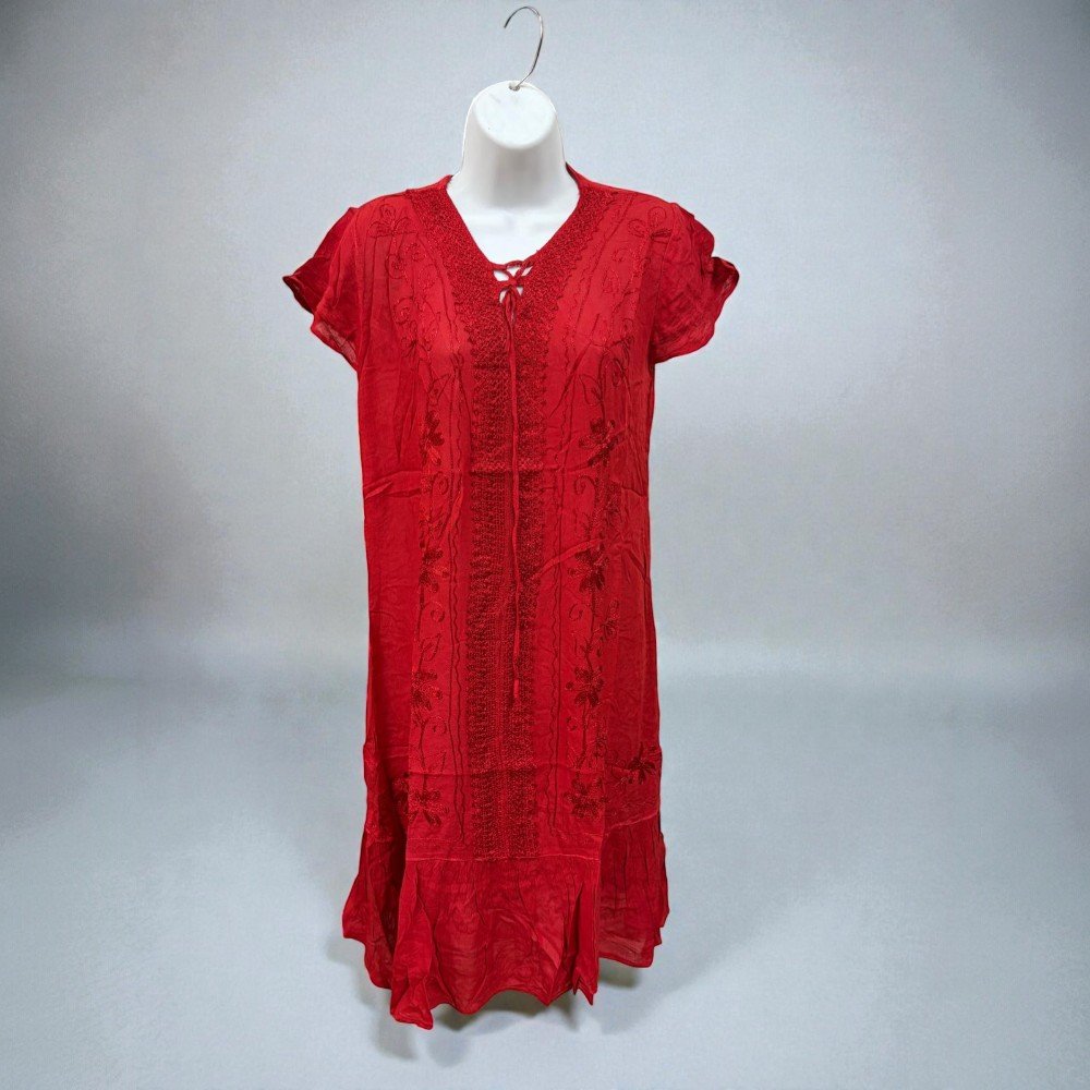 Bold Red embroidered tunic dress