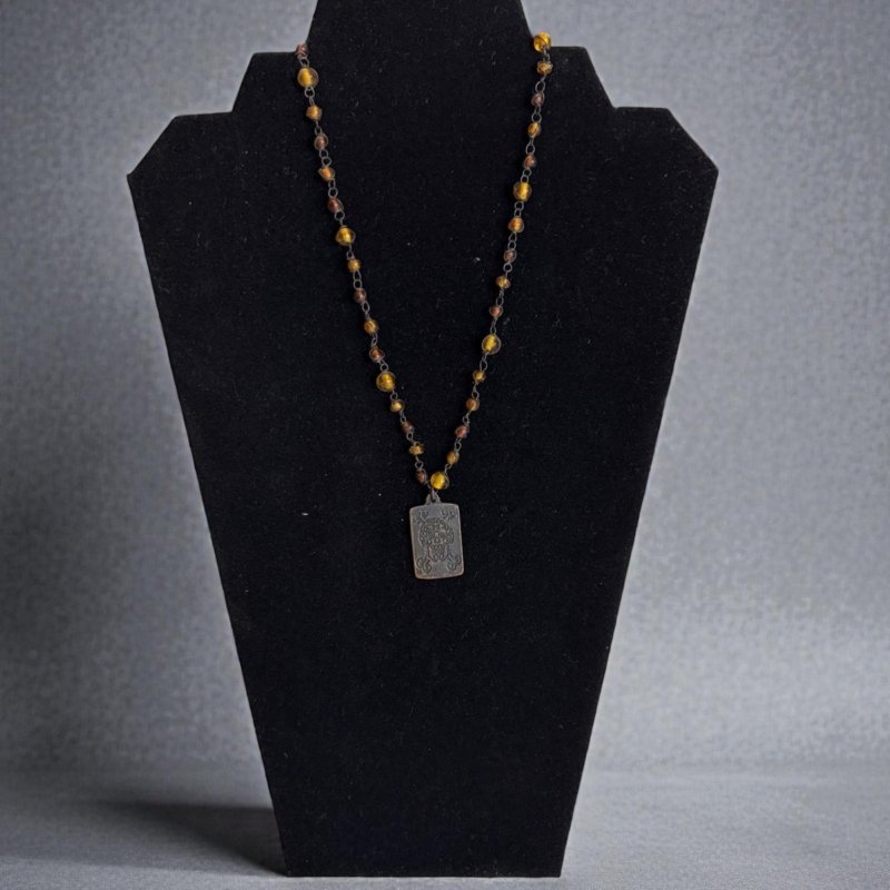 Tiger Eye Beaded Necklace | Rustic Pendant Necklace | Unisex Boho Jewelry | Earth Tone Bead Chain