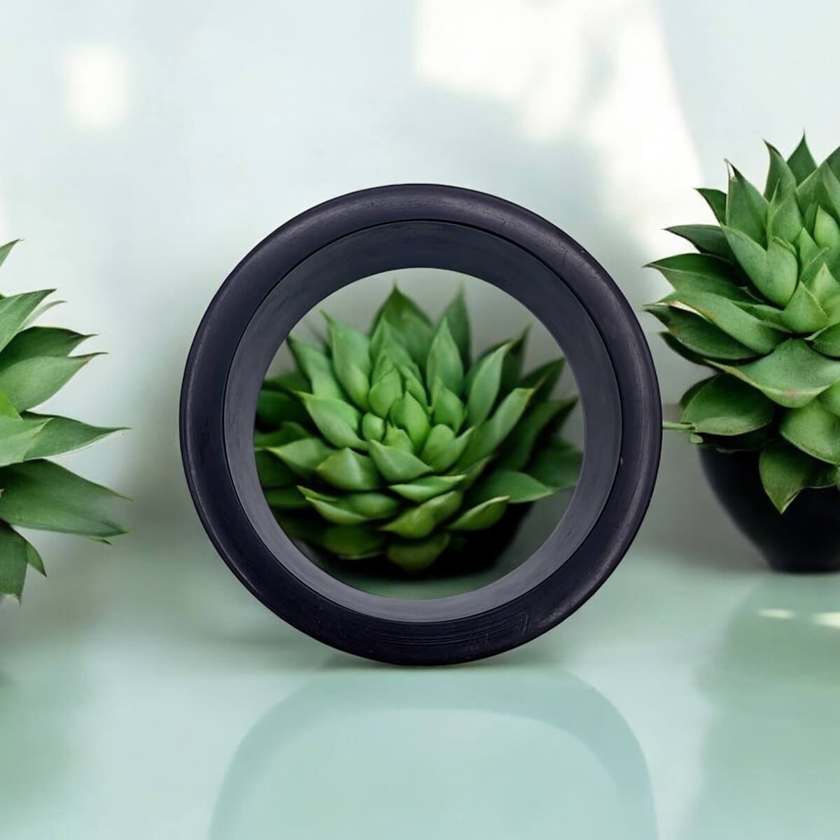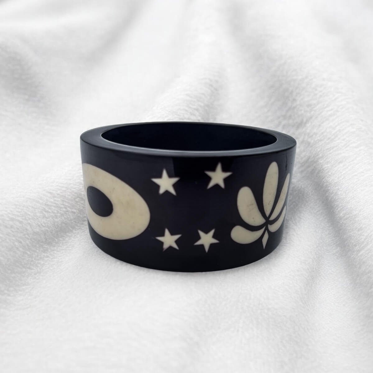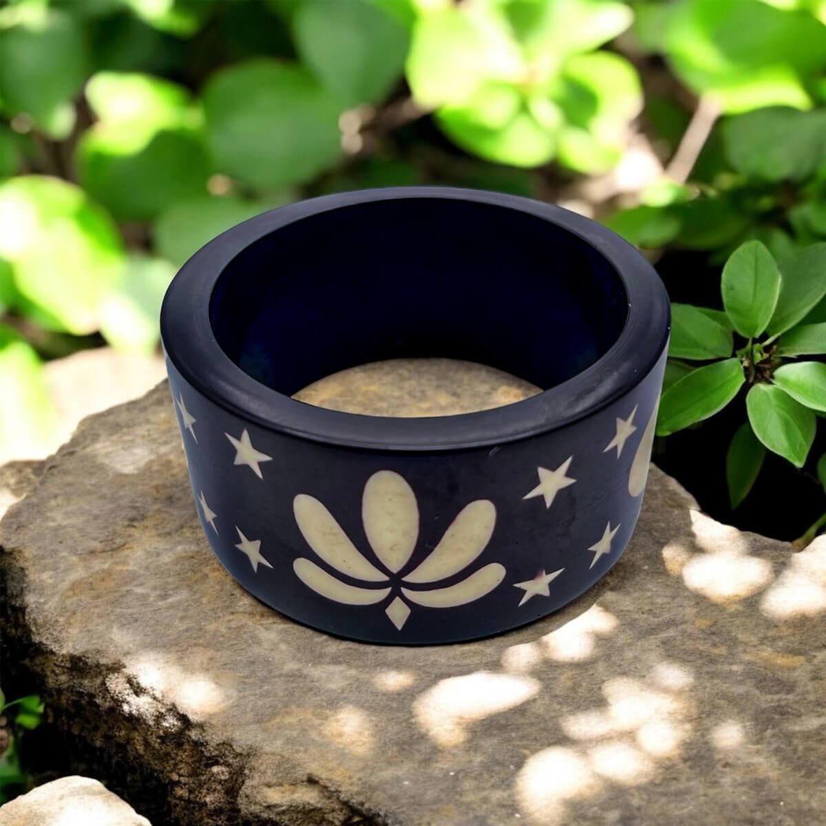 Black Resin Bangle with Stars & Lotus Flower Inlay – Celestial Boho Jewelry