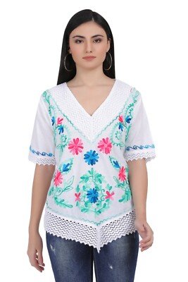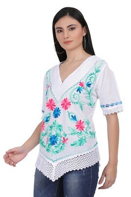 B eautiful handmade E mbroidered Mexican Blouses / tops with m ulticolors and styles. 100% Cotton Handmade Machine washable Free Shipping !!! S-1XL WE DO WHOLESALE ALSO !!!! PRICES MAY VARY DIFFERENT FOR WHOLESALE , BUT FOR ANY INFORMATION NEEDED MEASUREMENTS SMALL : Shoulder = 14in Waist =20in Height = 26in MEDIUM : Shoulder = 14.5in Waist = 21in Height = 27in LARGE : Shoulder = 15in Waist = 22in Height = 27in …