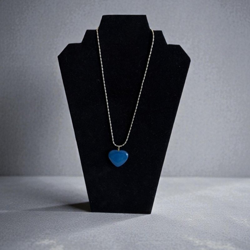 Blue Heart Necklace | Silver Tone Chain | Minimalist Color Pop Jewelry | Cute Trendy Pendant | Everyday Statement Necklace