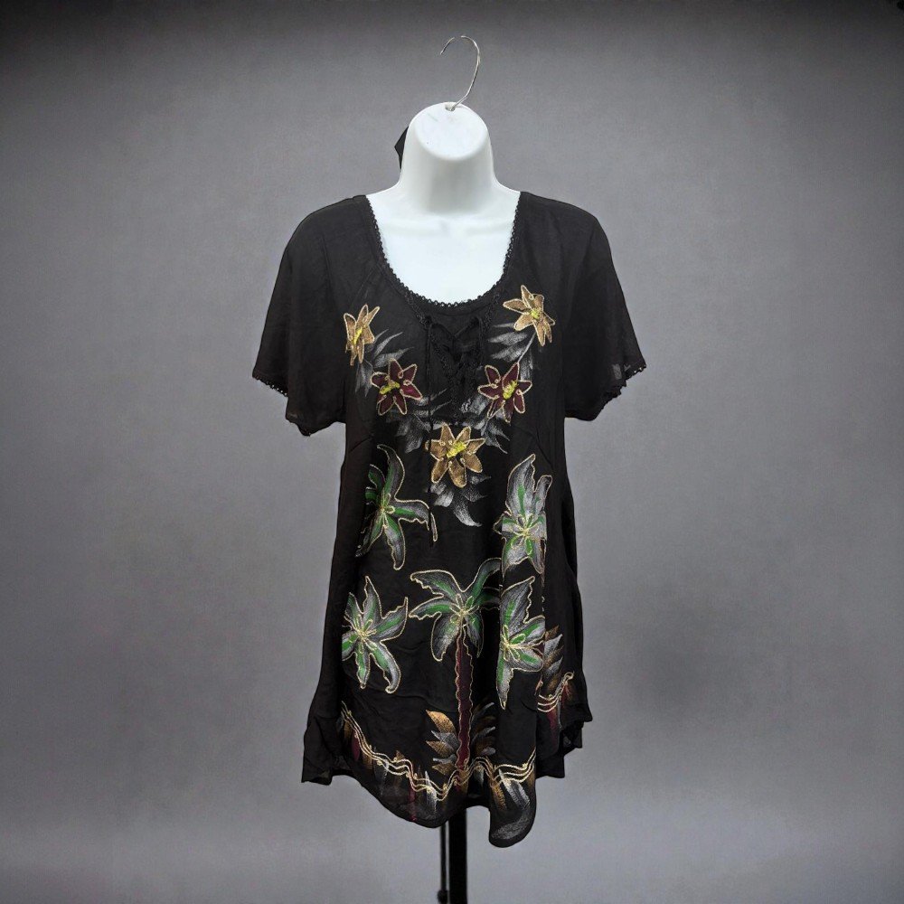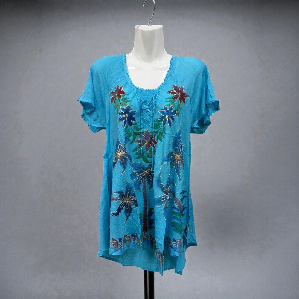 Make a bold, artistic statement with this floral embroidered boho blouse, designed to bring color and personality to your everyday style.