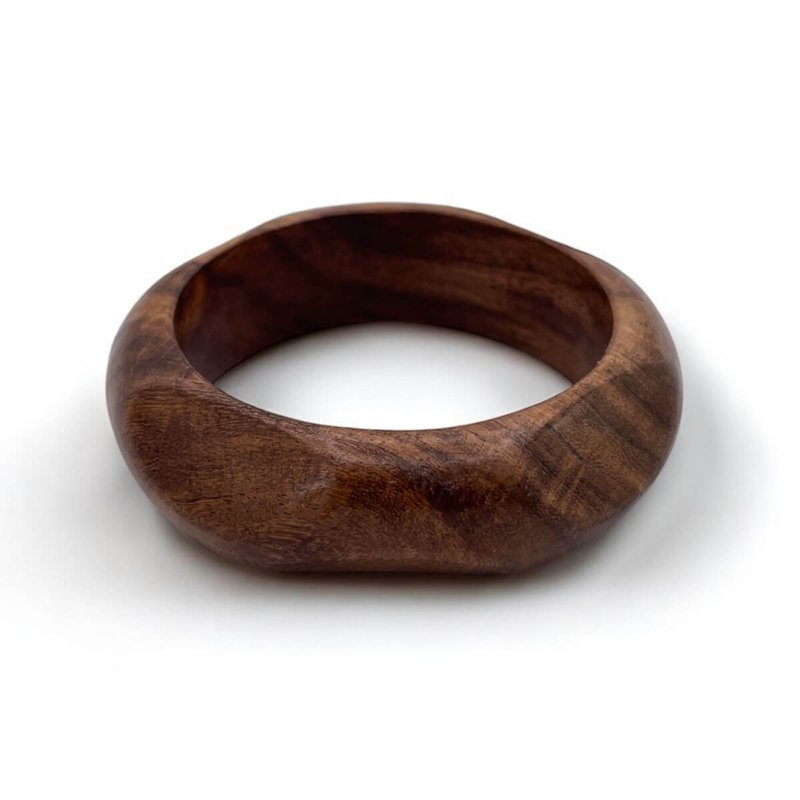 Organic Wavy Dark Wood Bangle – Sculptural Bohemian Bracelet