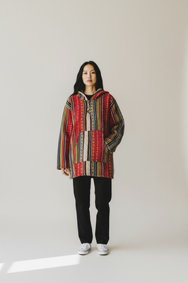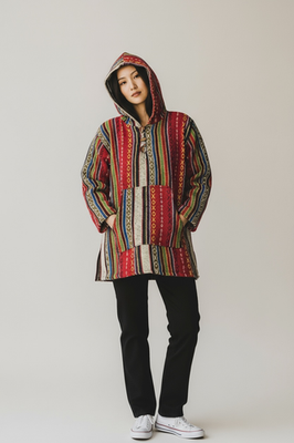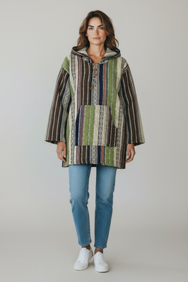 Keywords: Baja Joe, Hoodie, Pullover, Poncho, Stripes, Hippie, Surfer, Festival, Bohemian, Loose Fit, Casual, Sweater, Coat