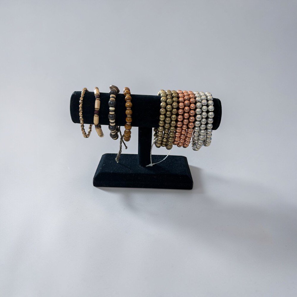 Each bracelet is uniquely designed with a mix of glass beads, patterns, and colors—from neutral tones to bold statement pieces. Perfect for stacking or wearing solo, these bracelets are a versatile addition to any jewelry collection.