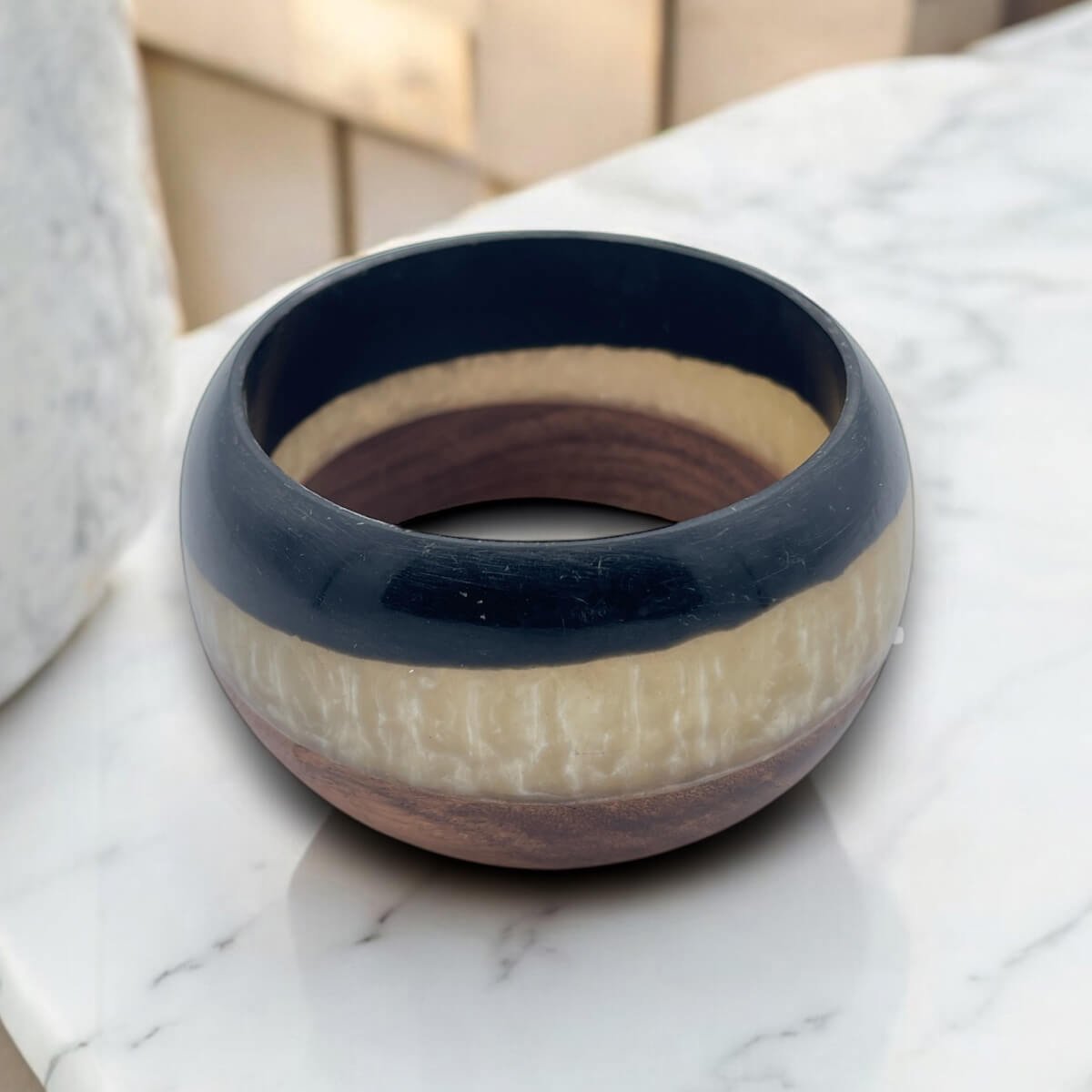 Striped Resin & Wood Bangle – Multi-Layered Boho Bracelet