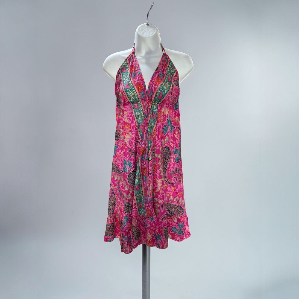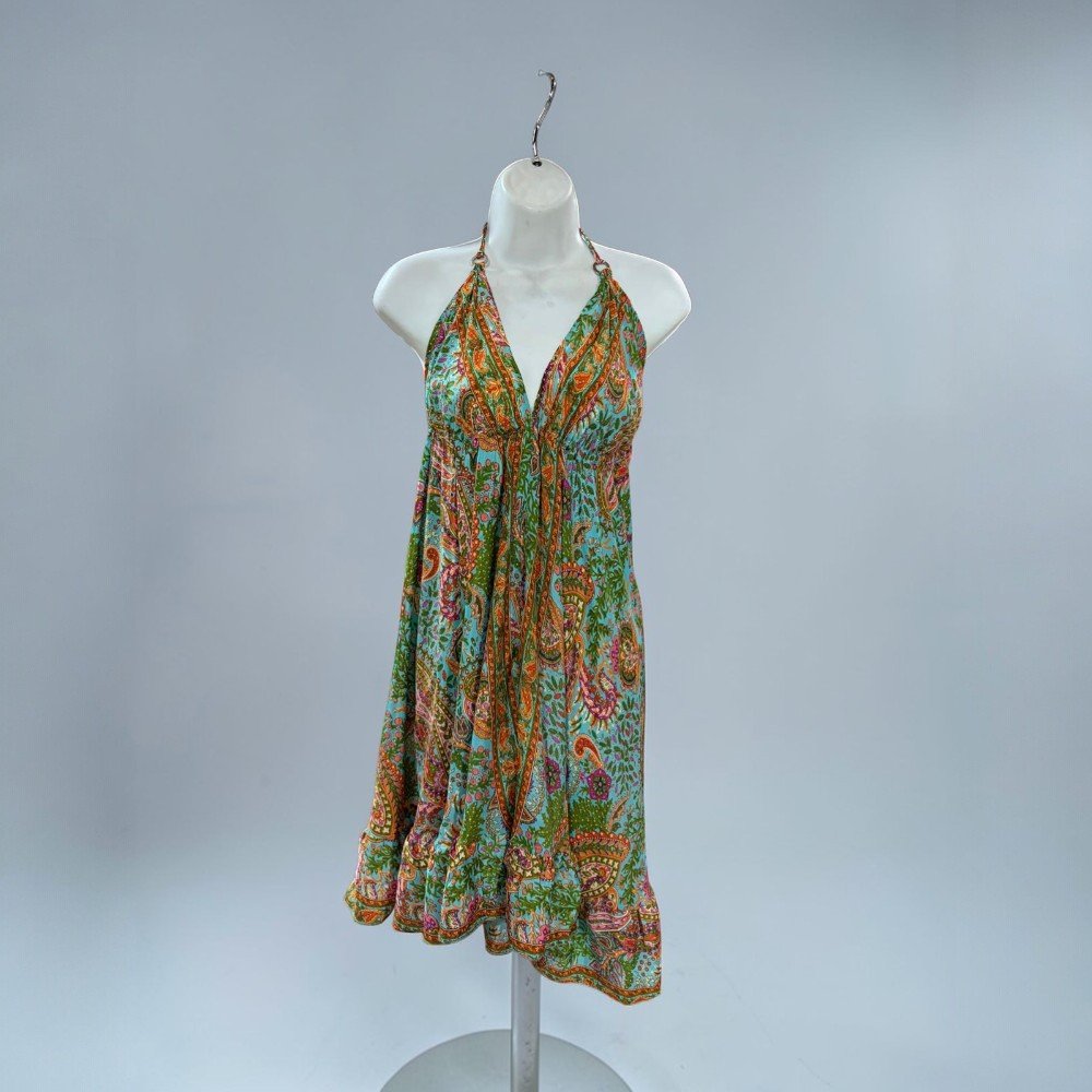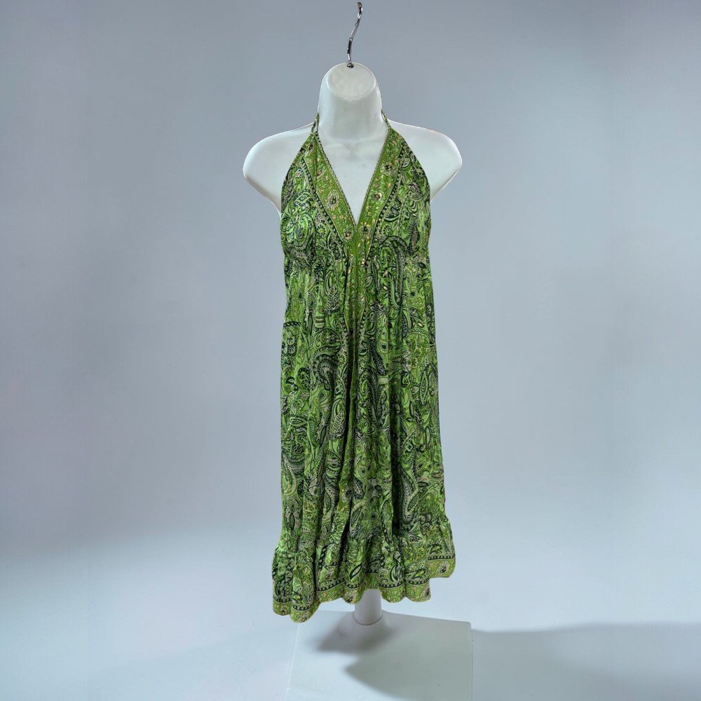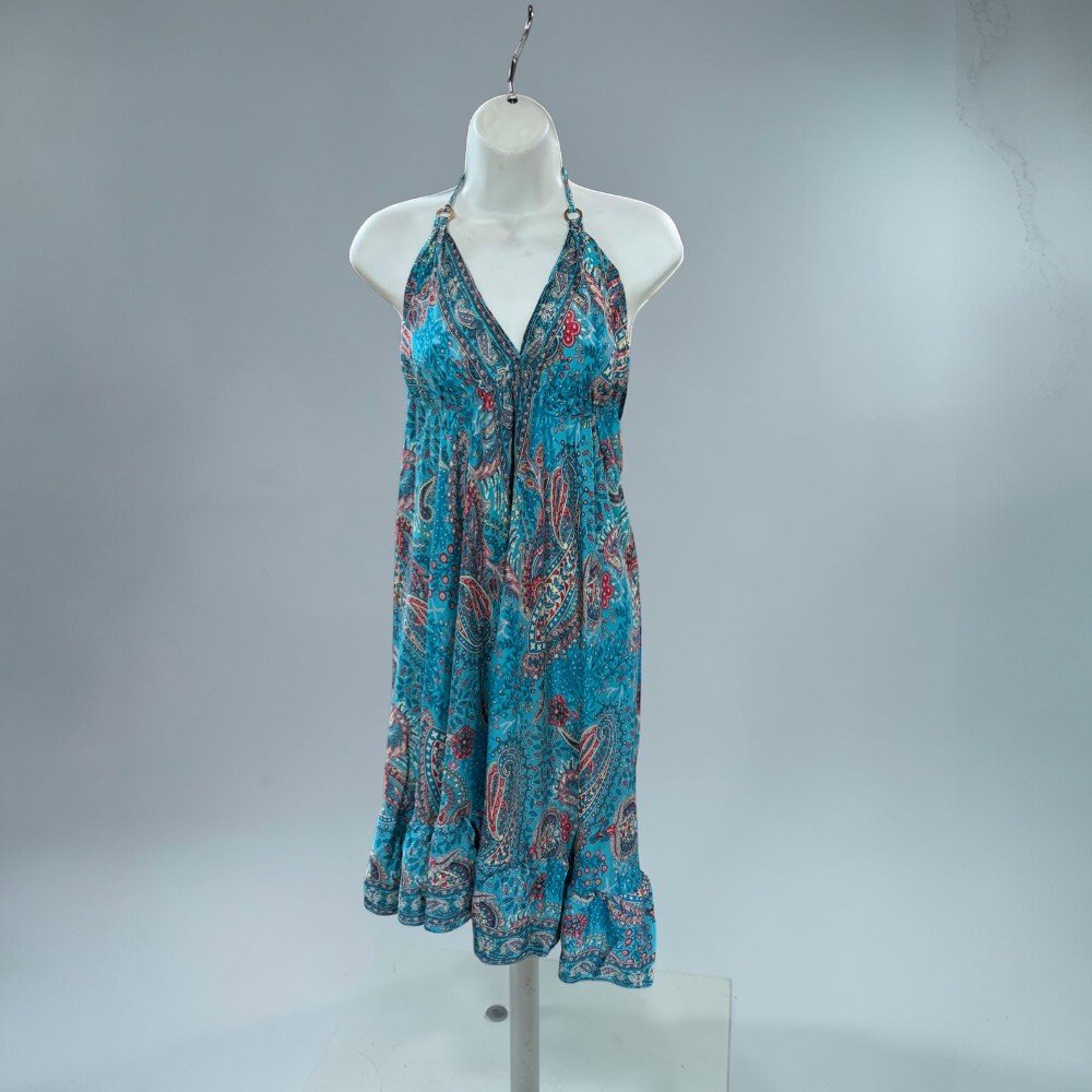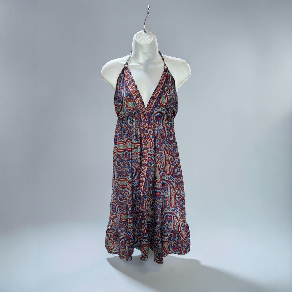 Boho Halter Backless Silk Summer Dress – Paisley Print Dress