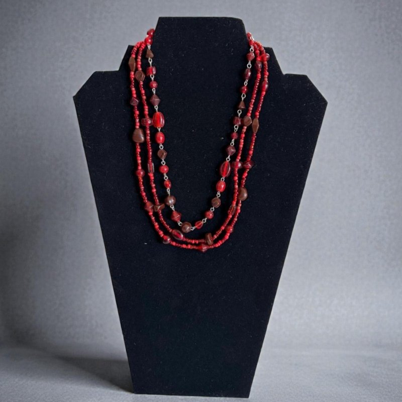 Red Multi Strand Beaded Necklace | Layered Statement Necklace | Bold Chunky Jewelry | Dramatic Boho Necklace