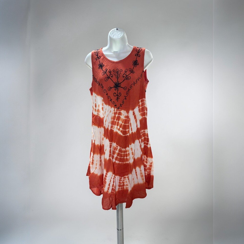 Bright, bold, and effortlessly comfortable — this flowy bohemian dress is the perfect statement piece for warm days and relaxed evenings. Featuring a vibrant tie-dye pattern with intricate embroidered detailing along the neckline, this dress blends eye-catching design with easy, breathable comfort.