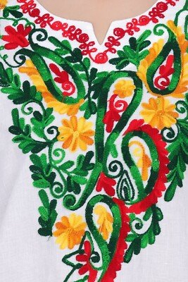 White Tops/Blouses Colorful Hand Stitched Mexican Style