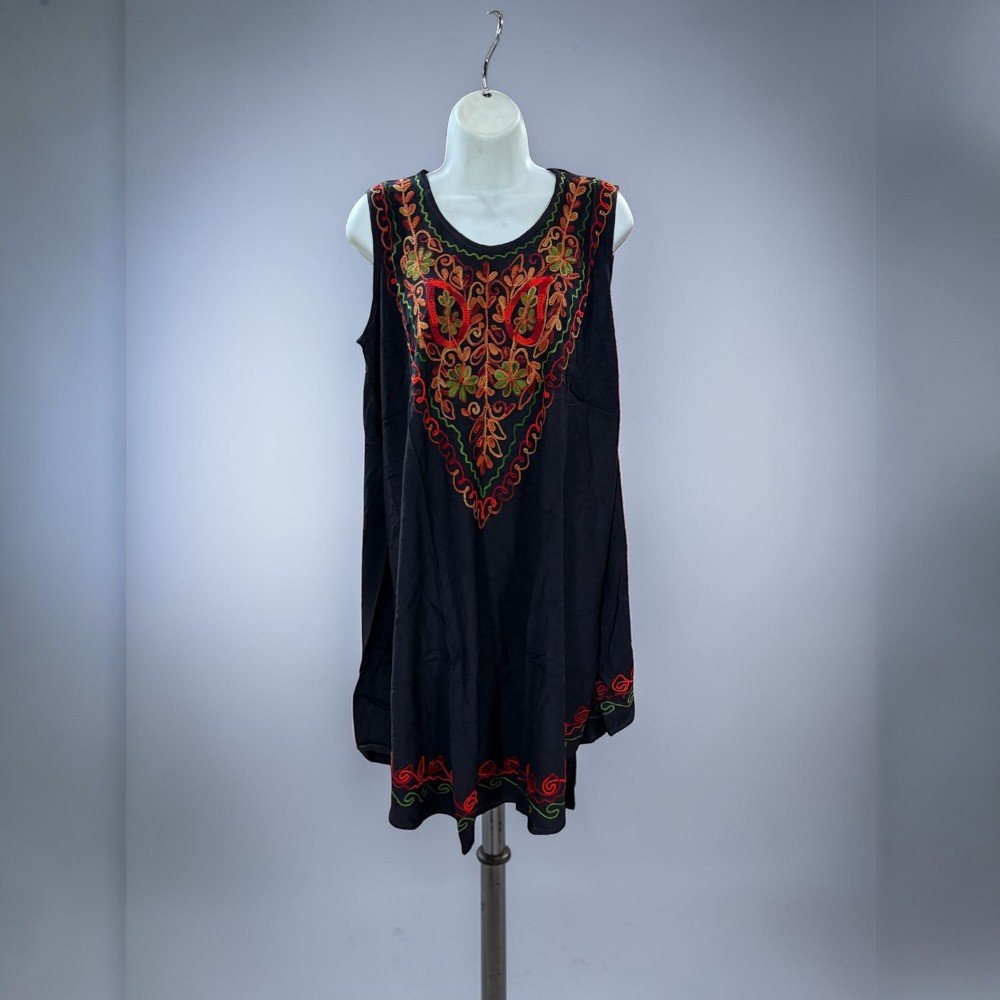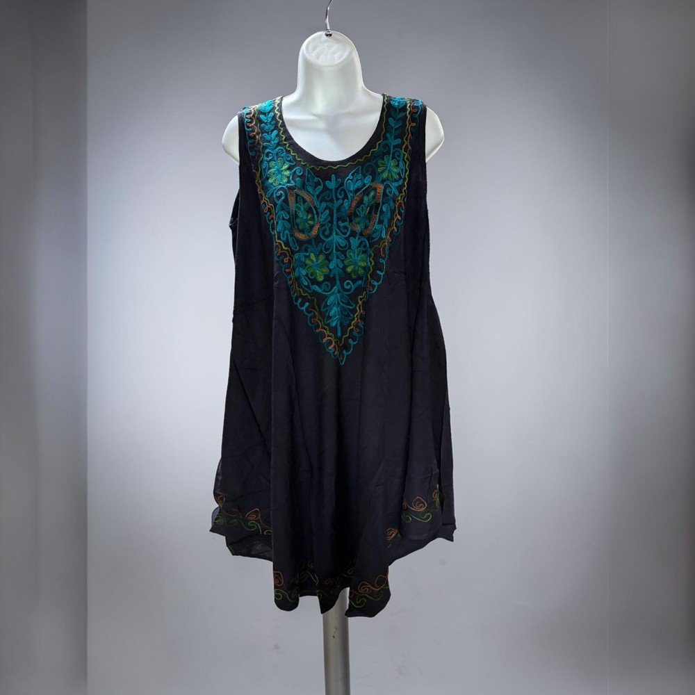 The sleeveless cut and soft, breathable fabric make it perfect for warm weather, vacations, festivals, or casual everyday wear. The detailed embroidery creates a stunning focal point, while the loose swing shape drapes comfortably and flatters a variety of body types.