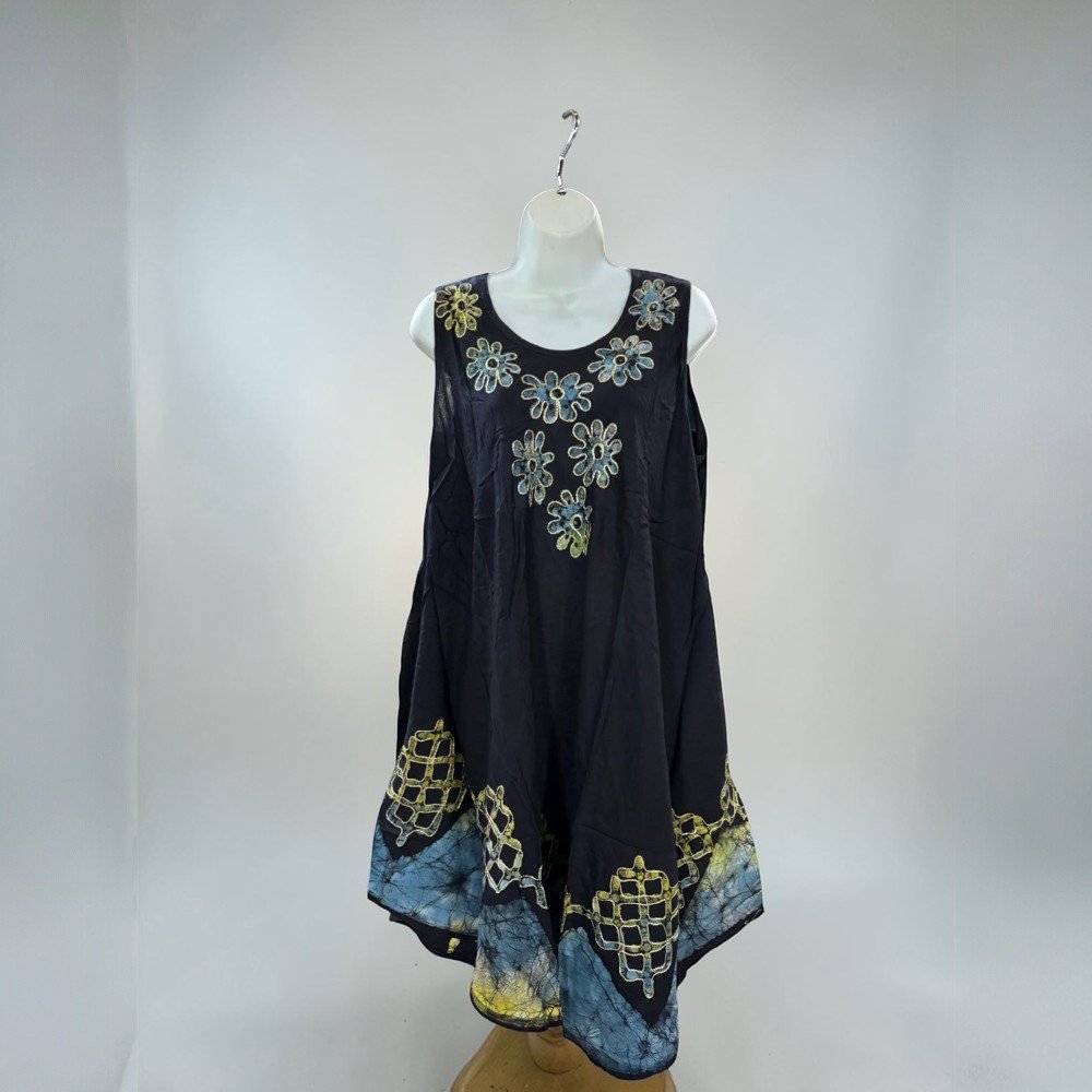 Boho Batik Sleeveless Swing Dress – Artistic Floral Tunic Dress – Flowy A-Line Summer Dress – Casual Beach & Vacation Outfit