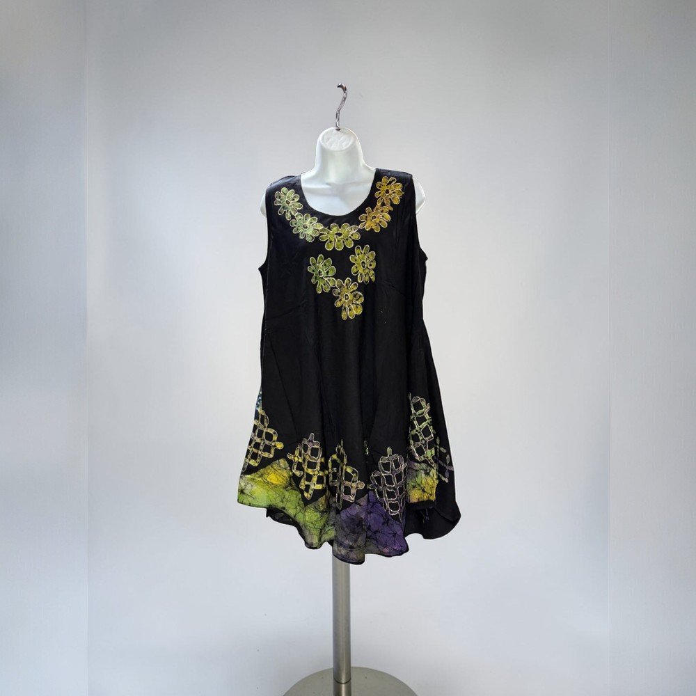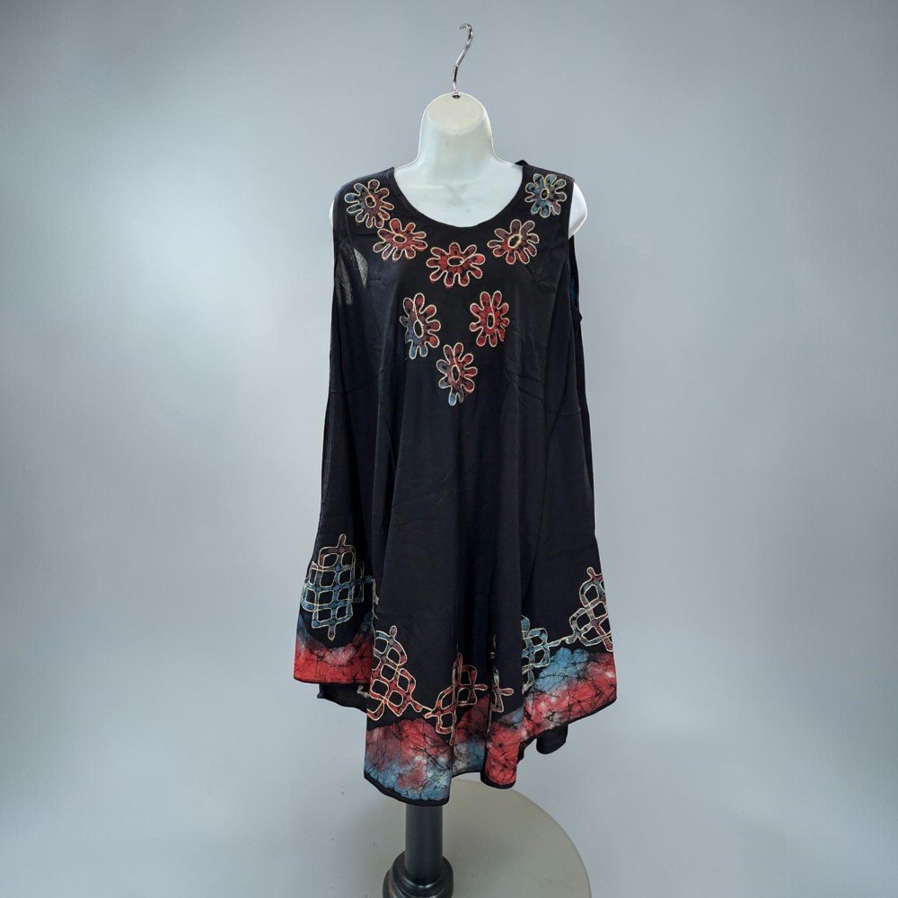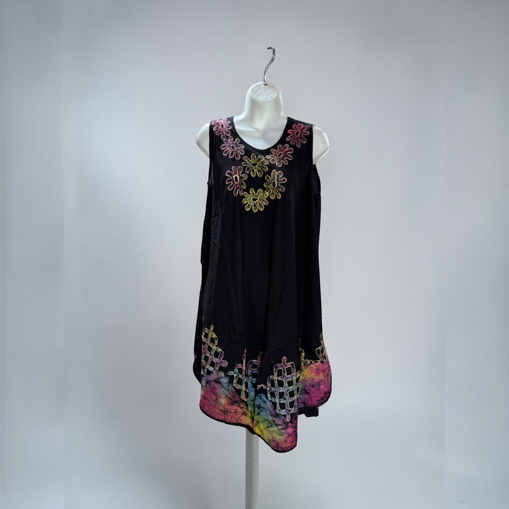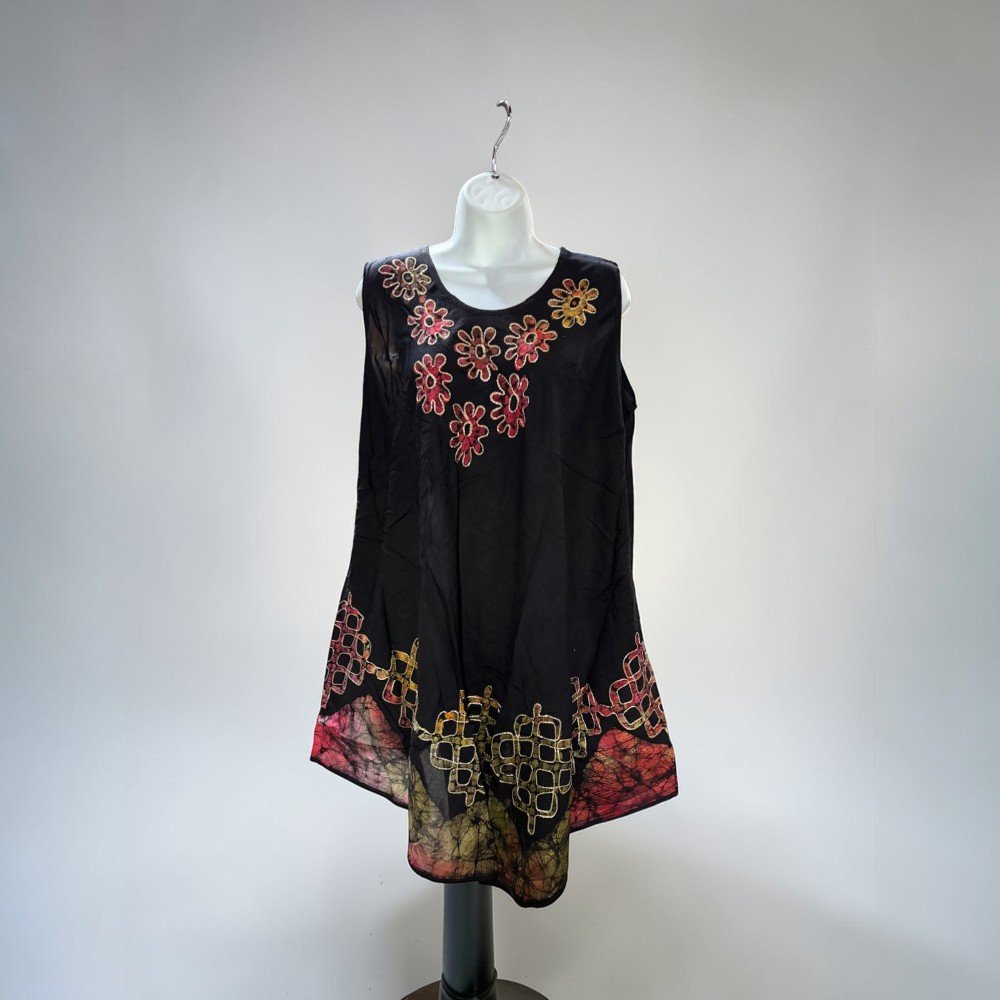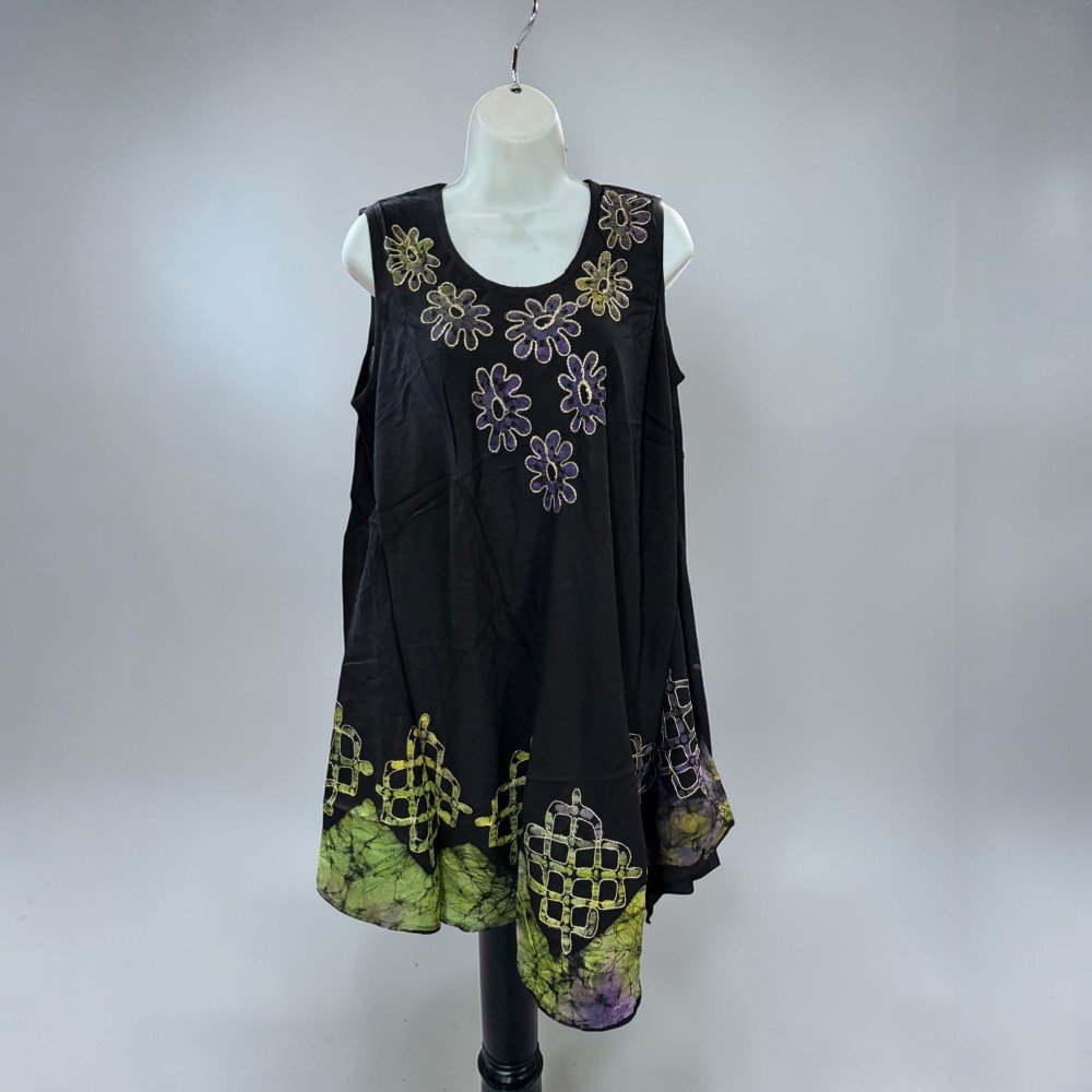 Black Boho Embroidered Dress – Sleeveless Tunic Dress – Colorful Floral Bohemian Dress – Relaxed Fit