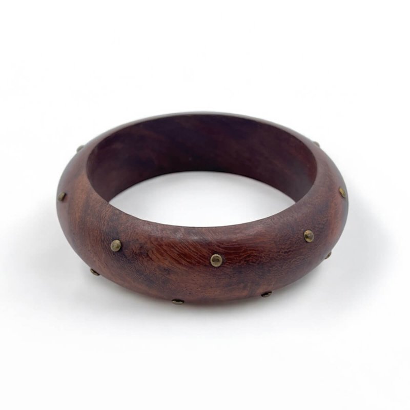 Dark Wood Bangle with Brass Studs – Rustic Bohemian Bracelet