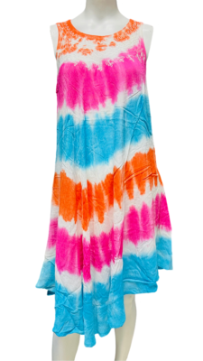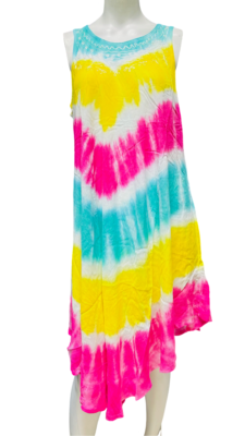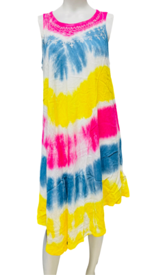 Womens Summer Sun Dress Umbrella Tie Dye rainbow Beach Resort Wear Boho Hippie